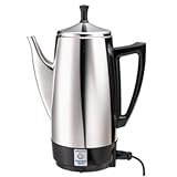 02811This luxurious coffee maker brews great tasting coffee at cup-a-minute speed. Makes two to twelve cups of rich, flavorful coffee, then keeps it piping hot automatically. Features: -Makes up to 12 cups of coffee, comes with filter basket and perk tube -All stainless steel material for easy cleaning -Automatically keeps coffee piping hot -1 year limited warranty -800 watts of power -Dimensions: 13"h x 5"w x 10"d